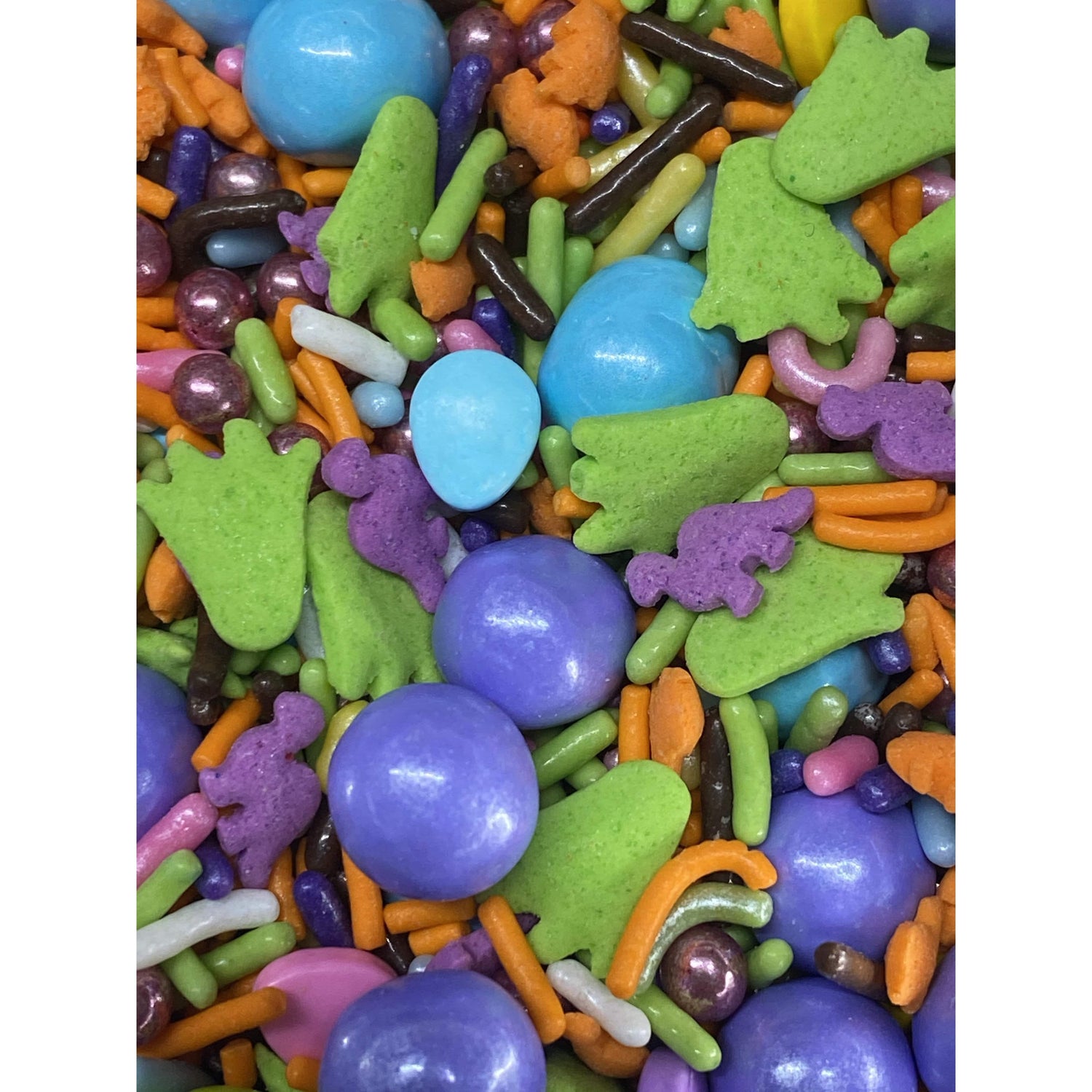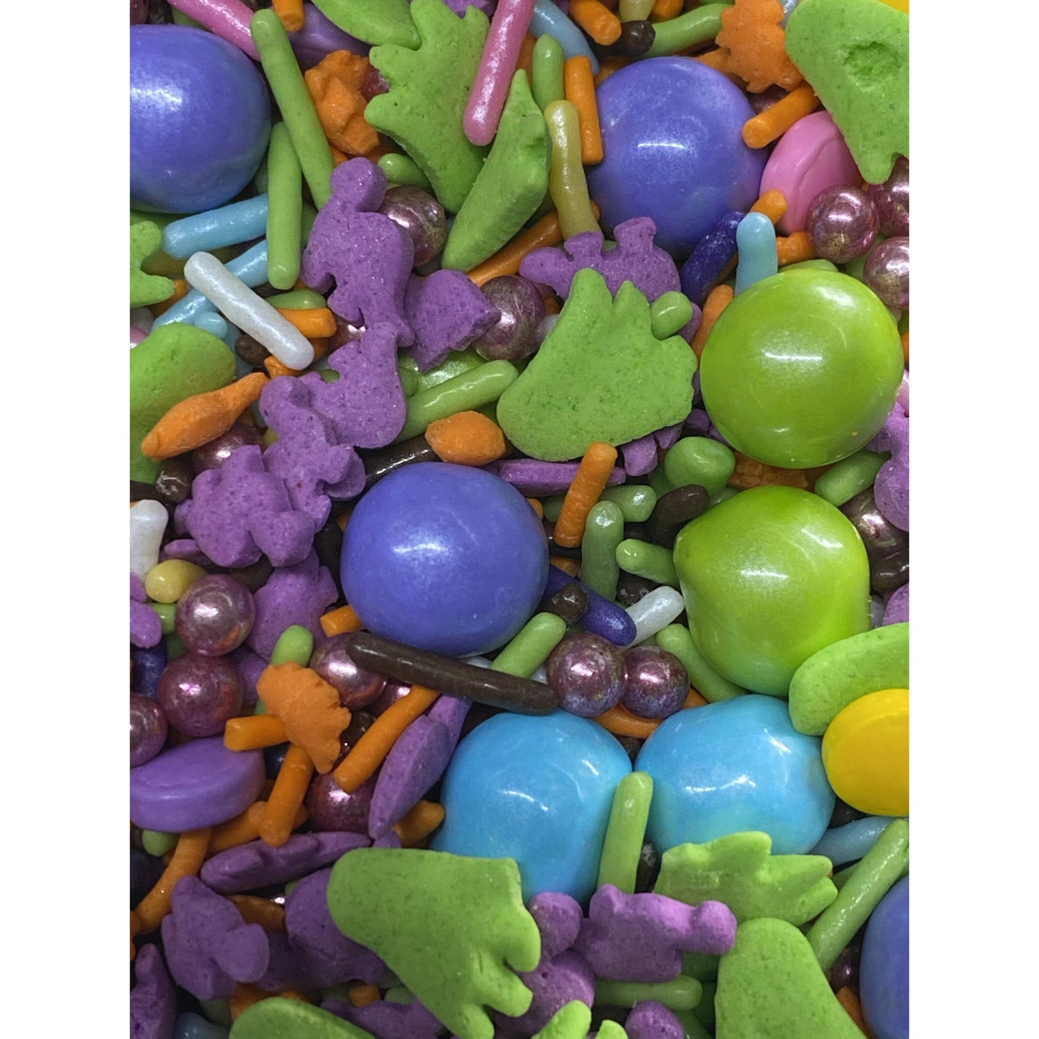 Rice flower,  cornstarch, rice, flour, palm oil, gum acadia, xanthan gum, natural and artificial flavor, red #3, blue 1, Lake, yellow 5, titanium dioxide, potassium sorbate, polysorbate 60.