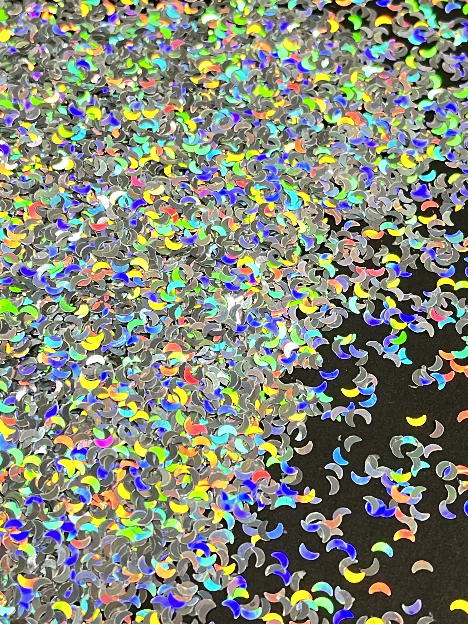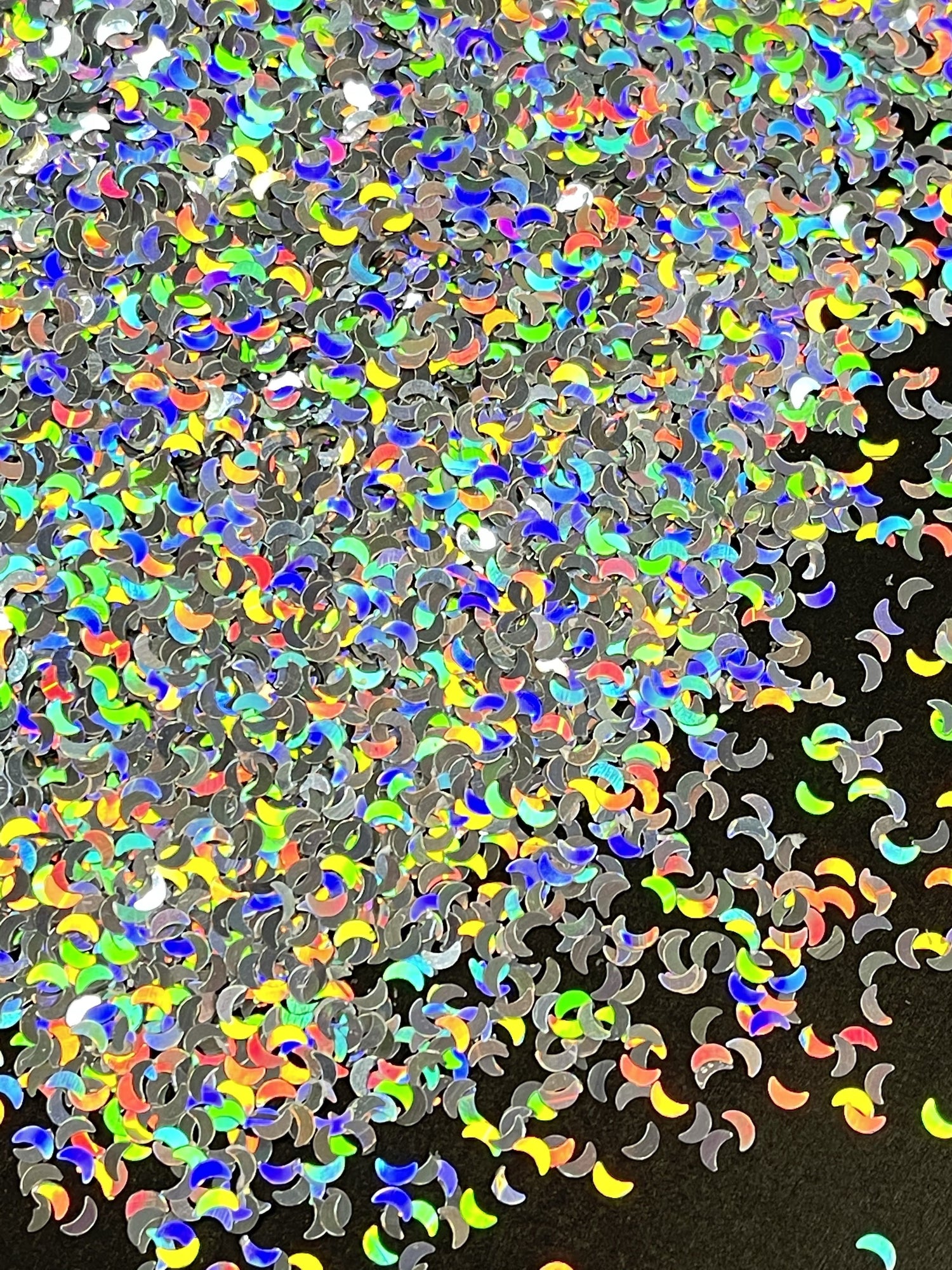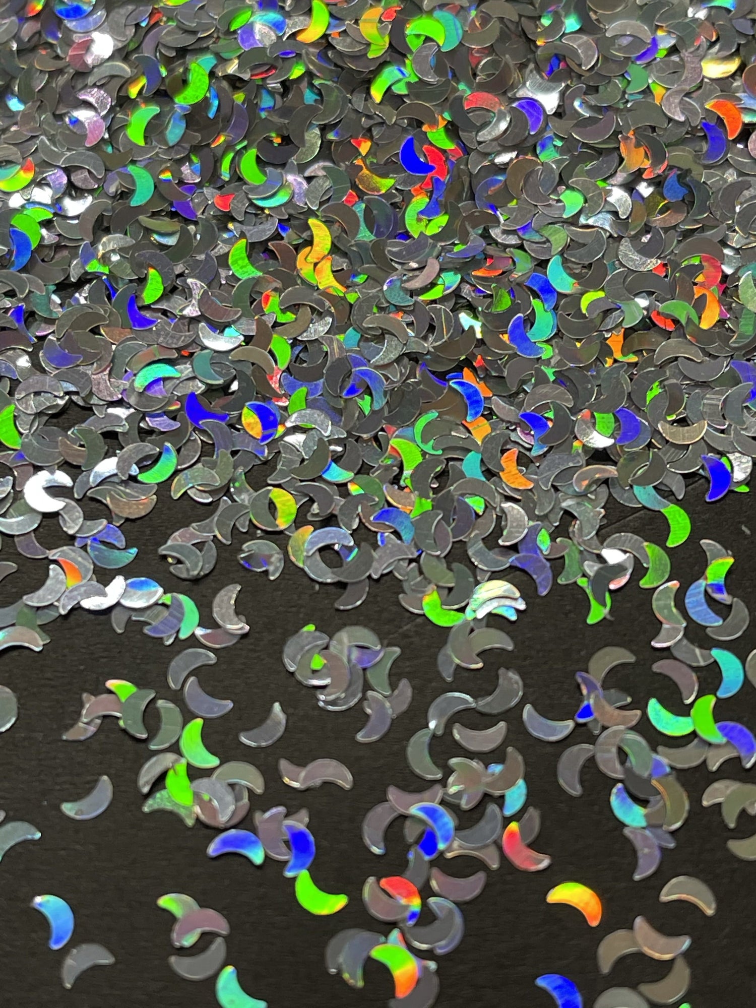 Brighten up the night sky with moon-cut holographic eco glitter.