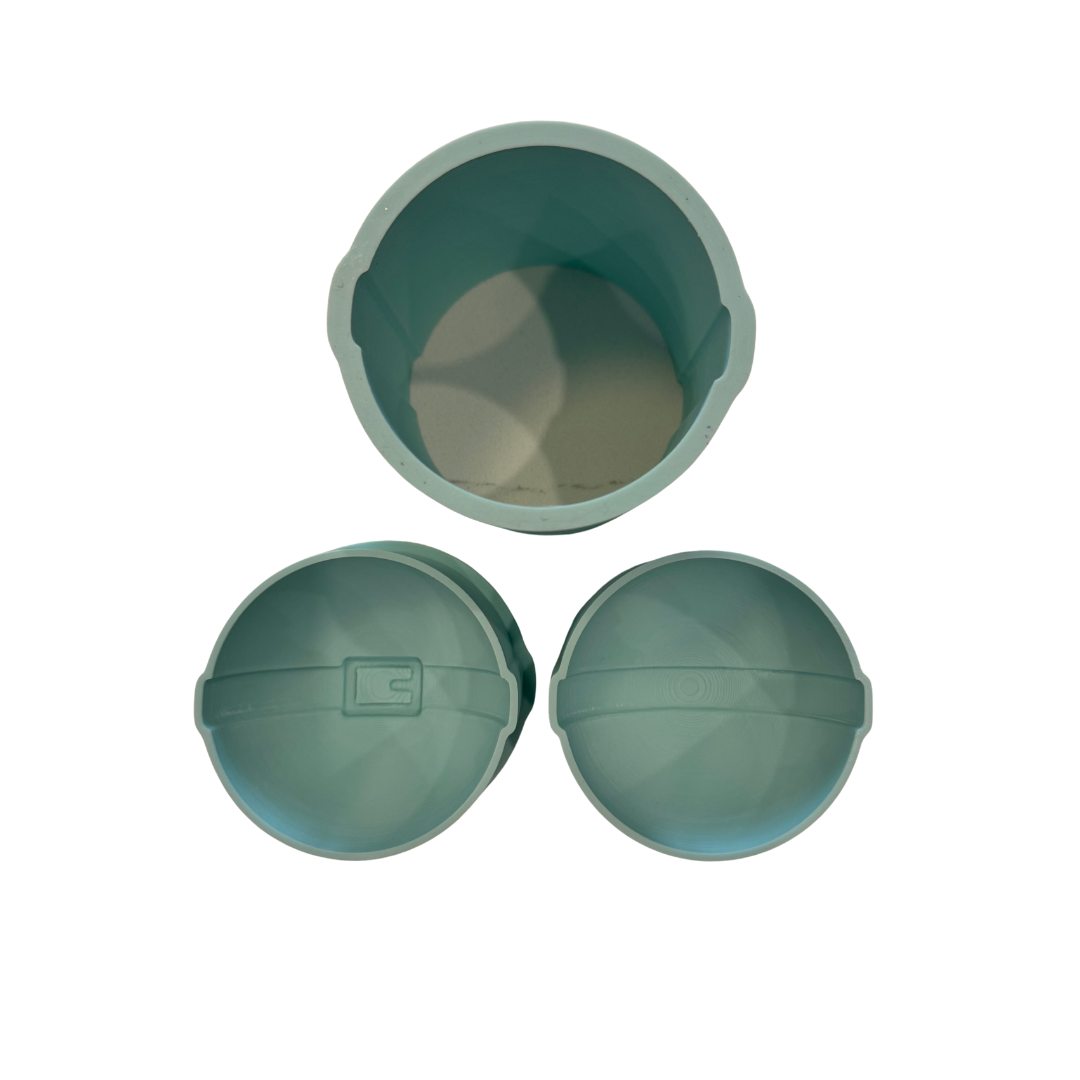 This is a 3D printed mold, and is most commonly used for making bath bombs. It is a three-piece mold that is 3D printed using PLA filament, and it is designed to be used to create bath bombs by hand. No additional machinery or equipment is required.