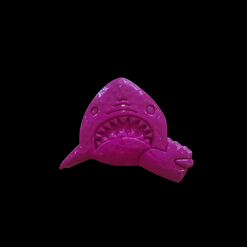Plastic molds for use with making bath bombs & soaps. Makes the shape of a shark holding a heart with a bite taken out.