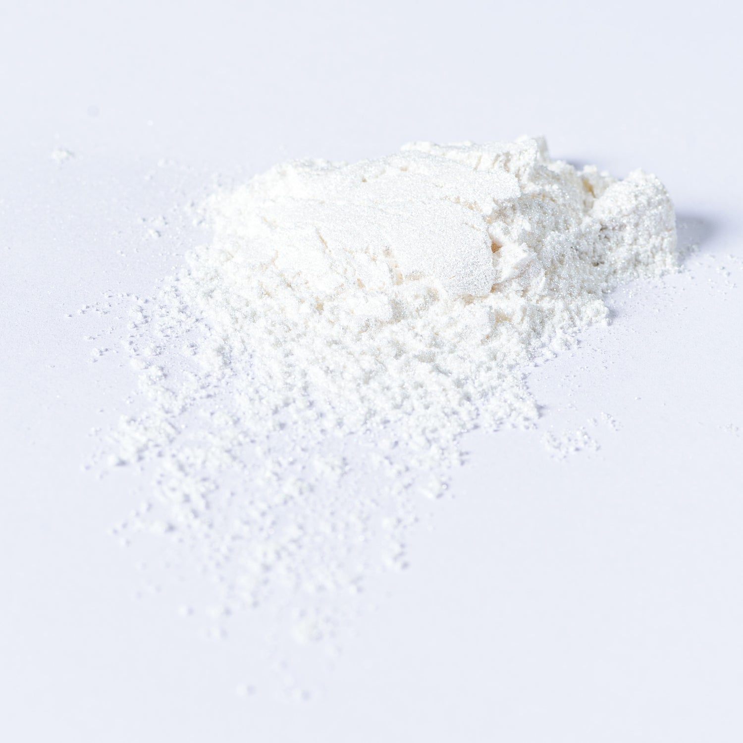 Titanium Dioxide (E171) and Mica (E555) that will give a pearlescent silver effect.