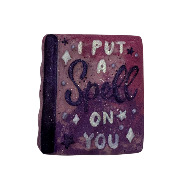 Spellbook Plastic Hand Mold - A cute spell book that reads "I put a Spell on you"