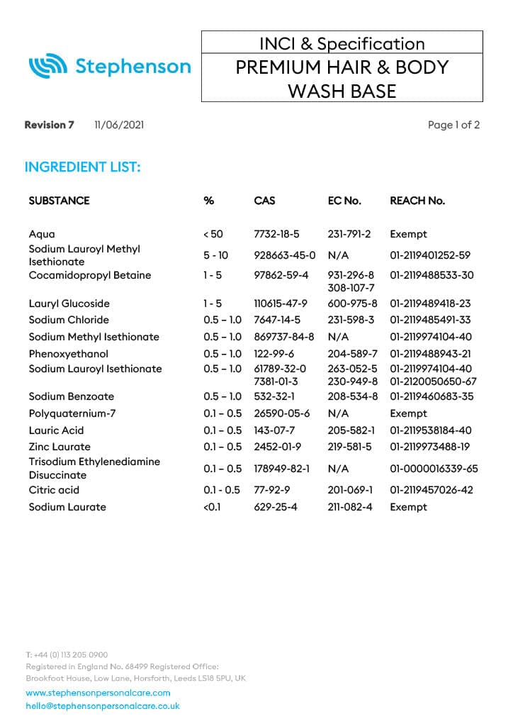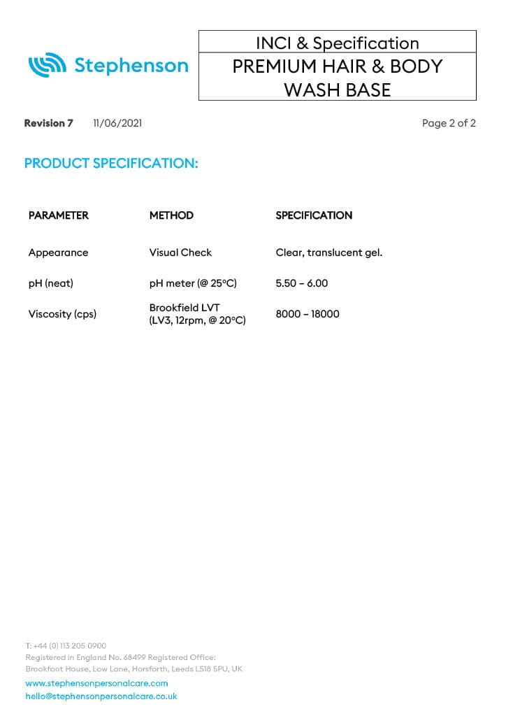 Create a wide range of quality cleansing shampoos, body washes, and soaps with the Premium Hair & Body Wash Base. Stephenson's personal care is well-known for their high-quality, ready-to-use bases. This base is easy to use and pre-thickened and offers the highest clarity and ph neutral cleansing.