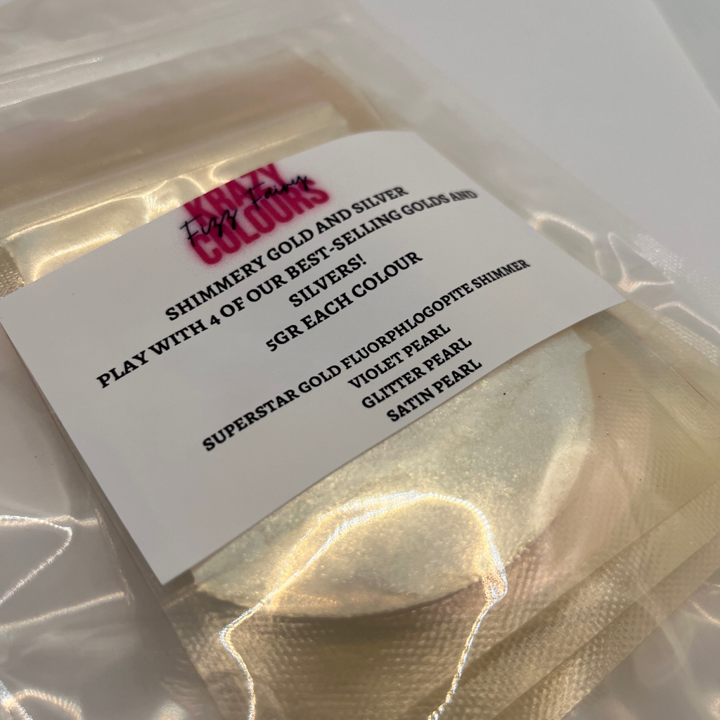 Shimmery Gold and Silver Mica Sample Pack is backordered and will ship as soon as it is back in stock.