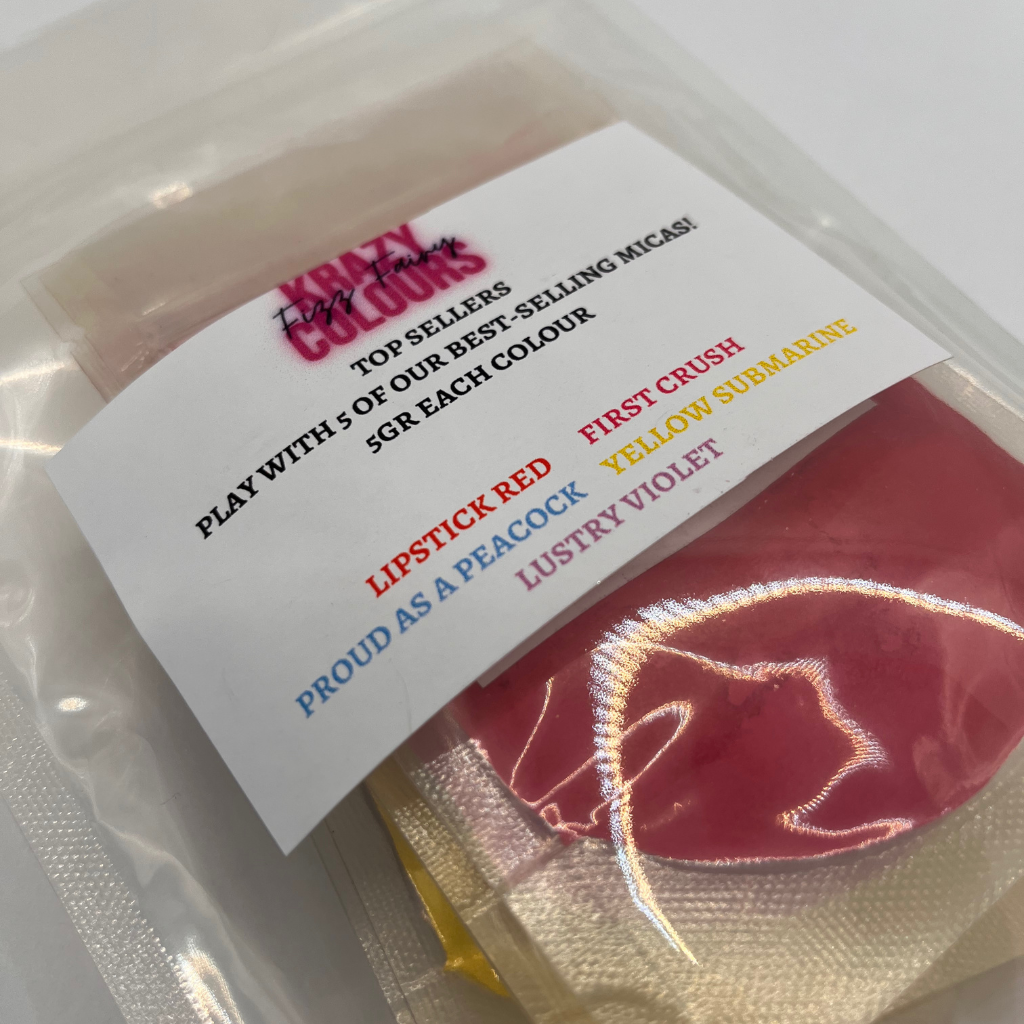 Try 5 of our bestselling shades of mica! This pack includes 5 different colours. Each sample is 5 grams.
