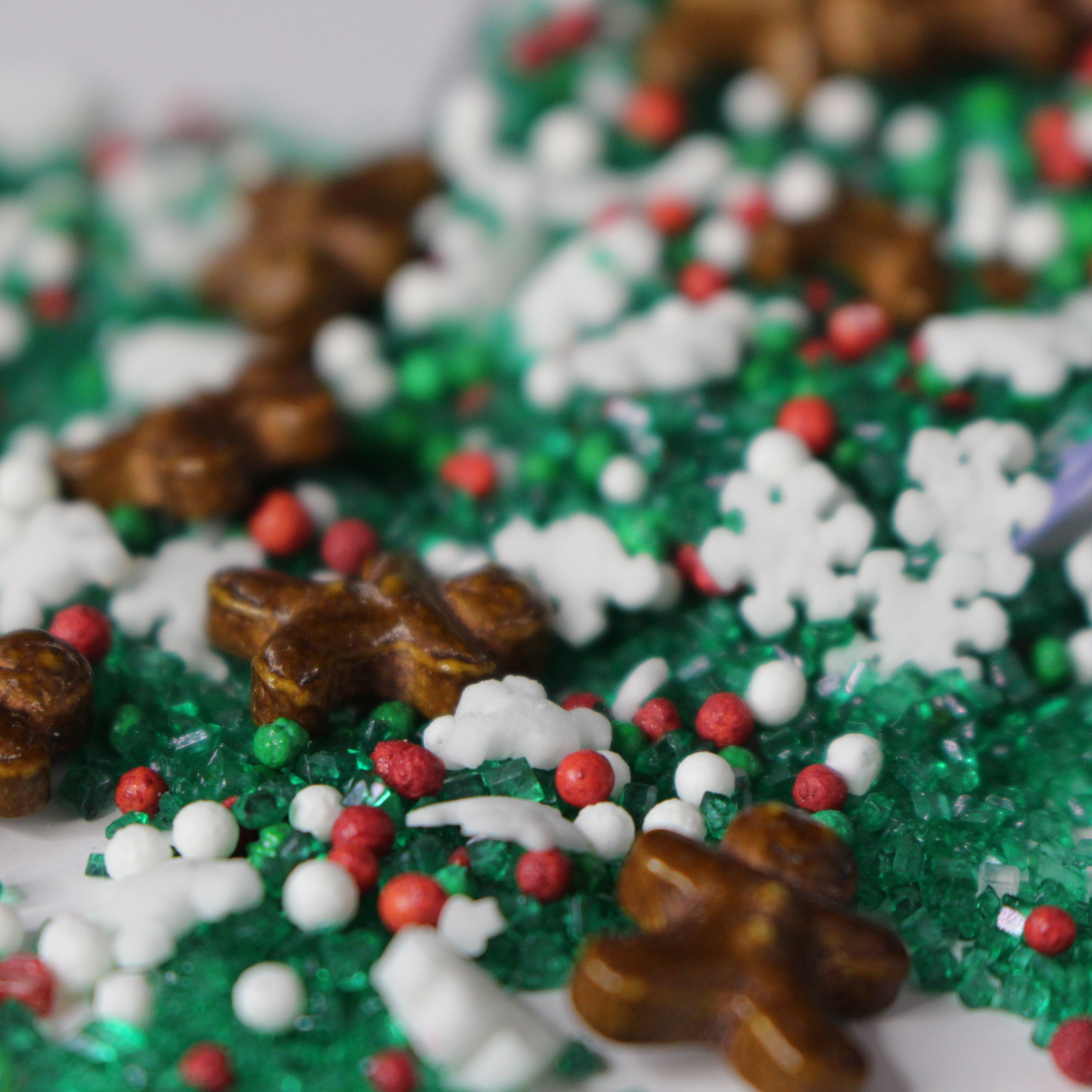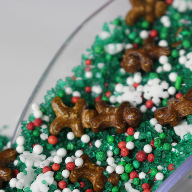 Who doesn't love little gingerbread men? A holiday staple in a fine green sugar sprinkle. Reminiscent of a Christmas sugar cookie. Get inspired by these Christmas Candy Sprinkles!